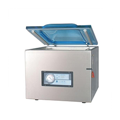 Крышка прозрачная, выполнена из высокопрочного оргстекла. Длина запаечной планки 260 мм. Между вакуумной камерой и вакуумным клапаном установлен дополнительный влагоотделительный фильтр, который защищает насос от попадания паров и влаги, которые могут содержаться в упаковываемом продукте. Тип используемого насоса – промышленный, предназначен для эксплуатации в производственных условиях.